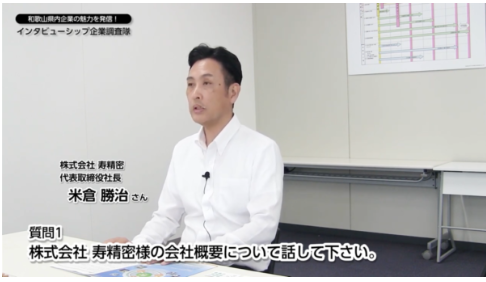 和歌山県内企業の魅力を発信!!(YouTube掲載) 写真By 寿精密2024年3月7日高野山大学の学生3名さんに弊社寿精密和歌山本社工場へ訪問頂きました。 様々の質問を頂き弊社の思い、魅力、みなさん一緒に働きませんかという 気持ちが伝われば非常に嬉しいです。 株)寿精密へのインタビューページ